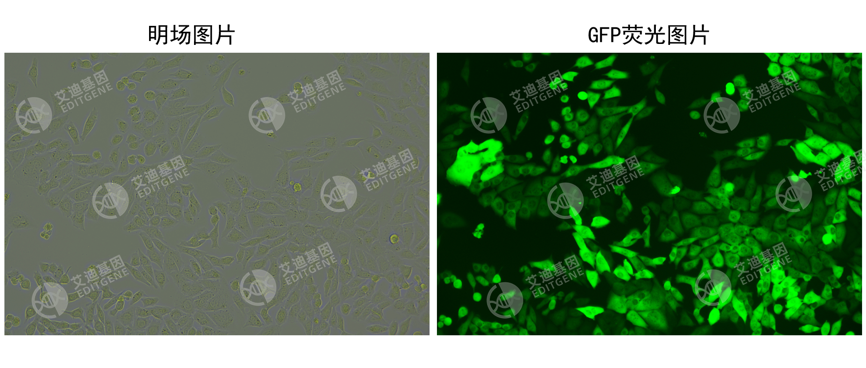 艾迪基因CopGFP稳转细胞株采用慢病毒转染构建,能够稳定高效地表达CopGFP荧光蛋白,可作为慢病毒感染实验中的对照细胞株使用。