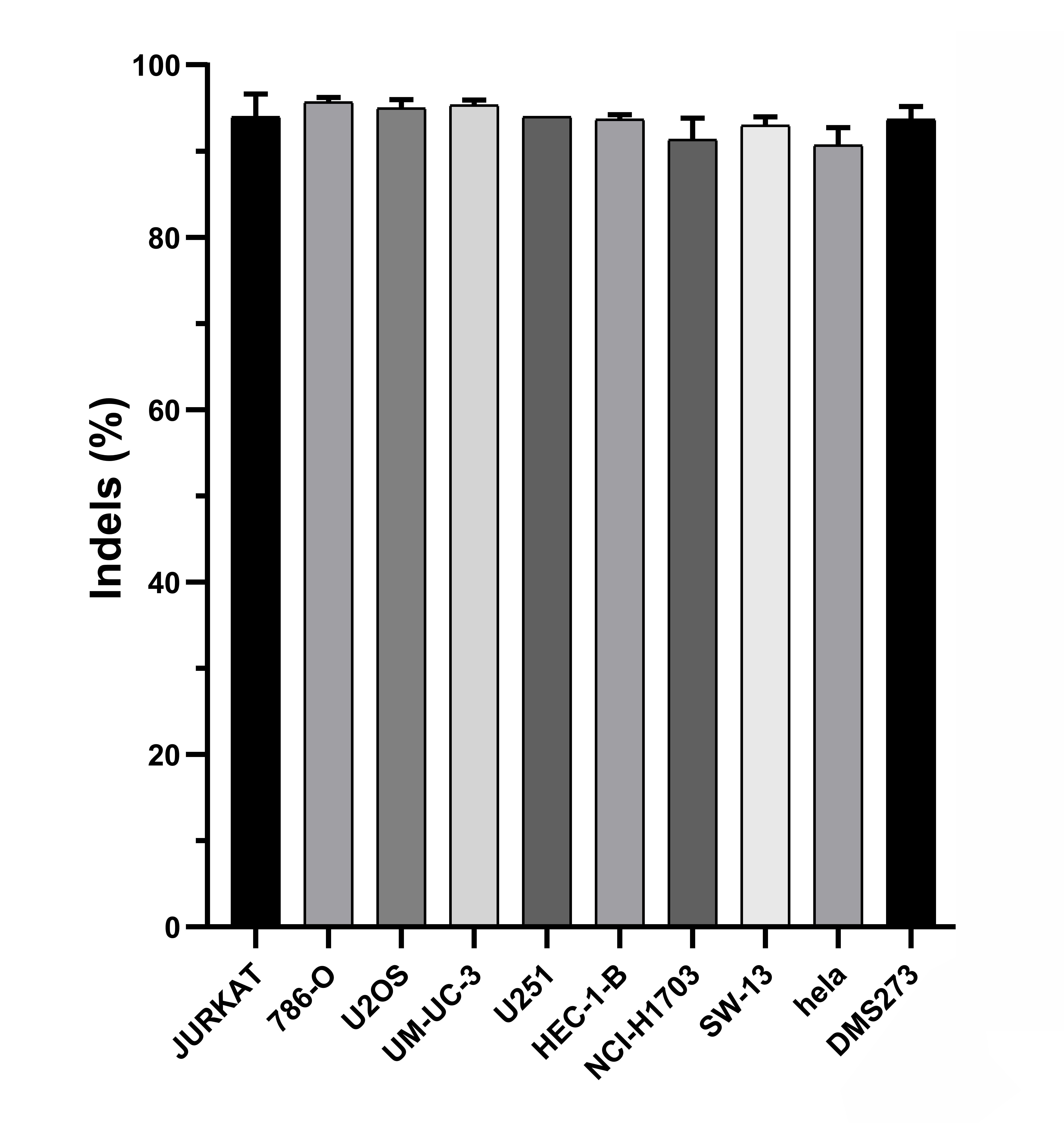 本产品已在多个细胞上验证,RNP系统在转染后4小时内即进入细胞发挥作用,Cas9蛋白在24-48小时降解,通过瞬时高效表达实现编辑,无需持续筛选。