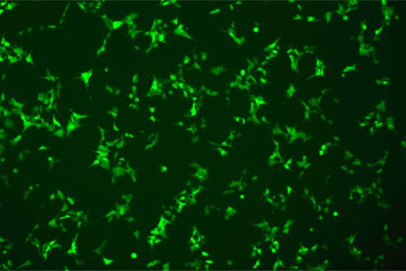 将CopEGFP基因序列克隆至慢病毒表达载体pLV3-CAG-MCS-P2A-Puro中,包装生产高滴度慢病毒颗粒,并感染人黑色素瘤细胞系A375。通过荧光显微镜直接观察感染后细胞中EGFP报告基因的表达情况,评估过表达效率。
