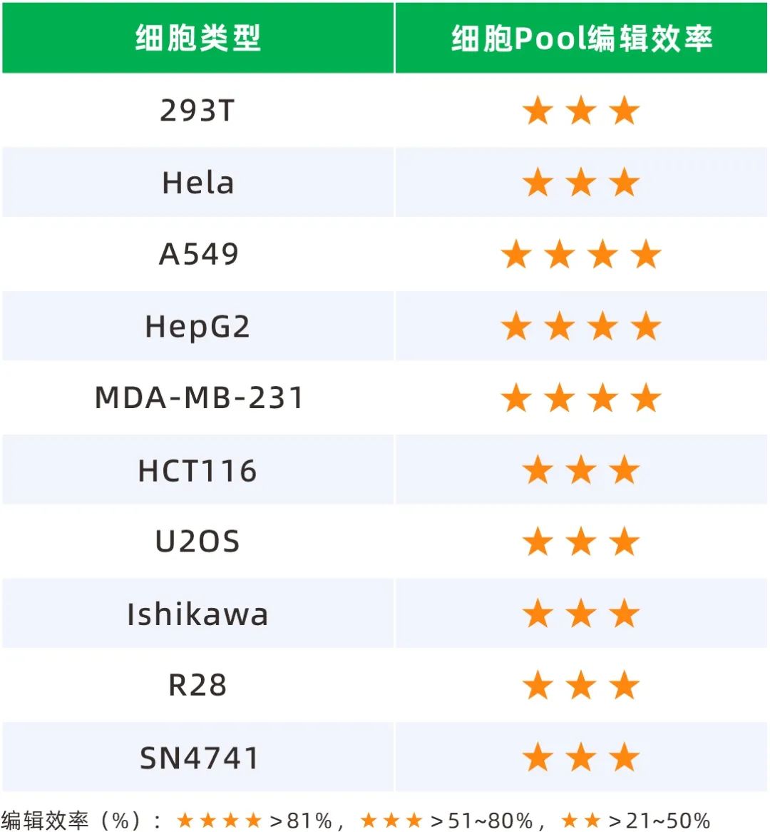 该试剂盒适用于制备精准、高效的基因定点突变(替换、插入、缺失)细胞株,