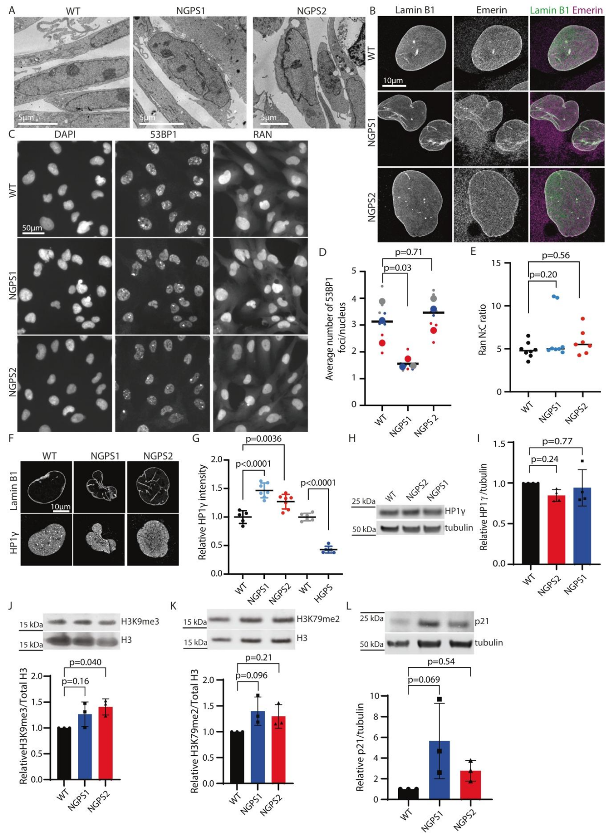 图1 NGPS 成纤维细胞显示出与 HGPS 不同的表型