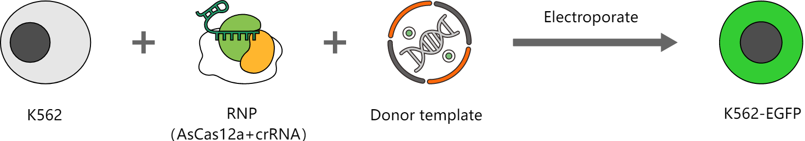 艾迪基因应用电转染的方法将HES-KI系统递送至K562细胞中,实现EGFP在Safety Harbor位点插入并成功表达。