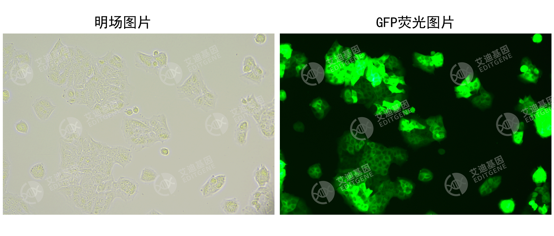 艾迪基因CopGFP稳转细胞株采用慢病毒转染构建,能够稳定高效地表达CopGFP荧光蛋白,可作为慢病毒感染实验中的对照细胞株使用。