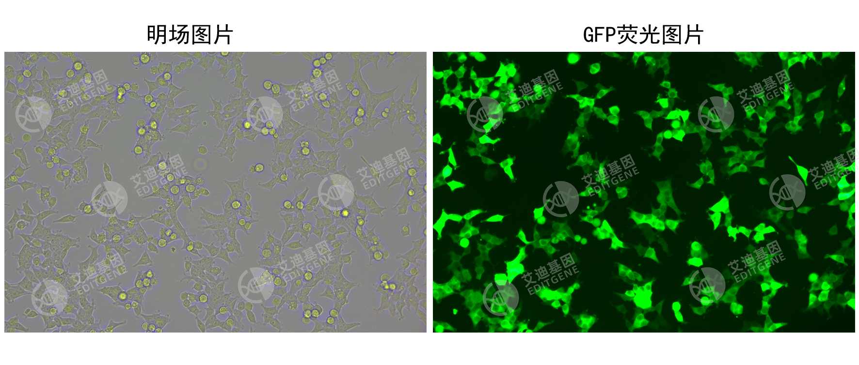 艾迪基因CopGFP稳转细胞株采用慢病毒转染构建,能够稳定高效地表达CopGFP荧光蛋白,可作为慢病毒感染实验中的对照细胞株使用。
