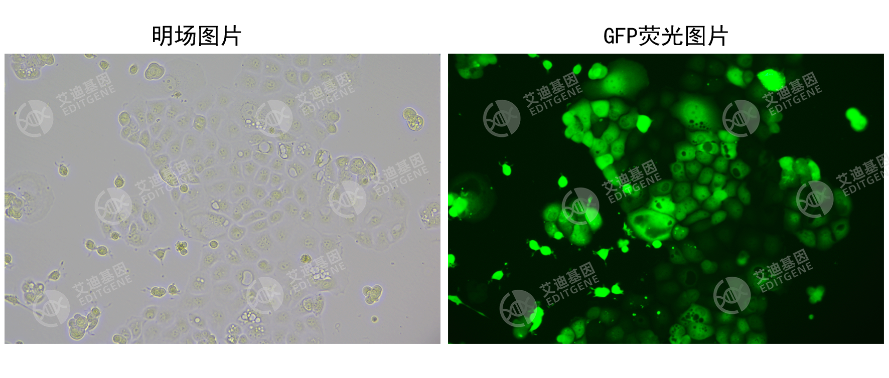 艾迪基因CopGFP稳转细胞株采用慢病毒转染构建,能够稳定高效地表达CopGFP荧光蛋白,可作为慢病毒感染实验中的对照细胞株使用。