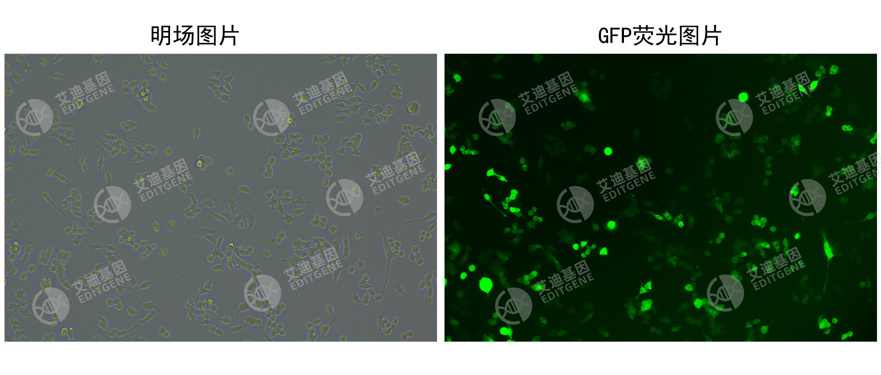 艾迪基因CopGFP稳转细胞株采用慢病毒转染构建,能够稳定高效地表达CopGFP荧光蛋白,可作为慢病毒感染实验中的对照细胞株使用。