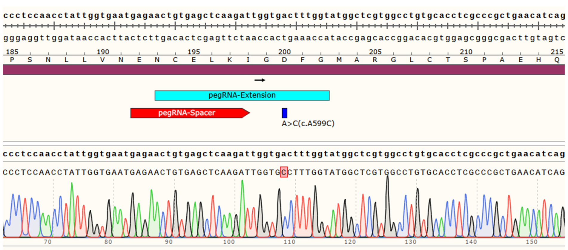 使用先导编辑在A549,K562,IPSC细胞中构建单碱基位点突变细胞系